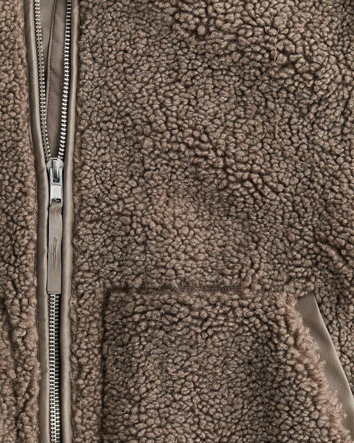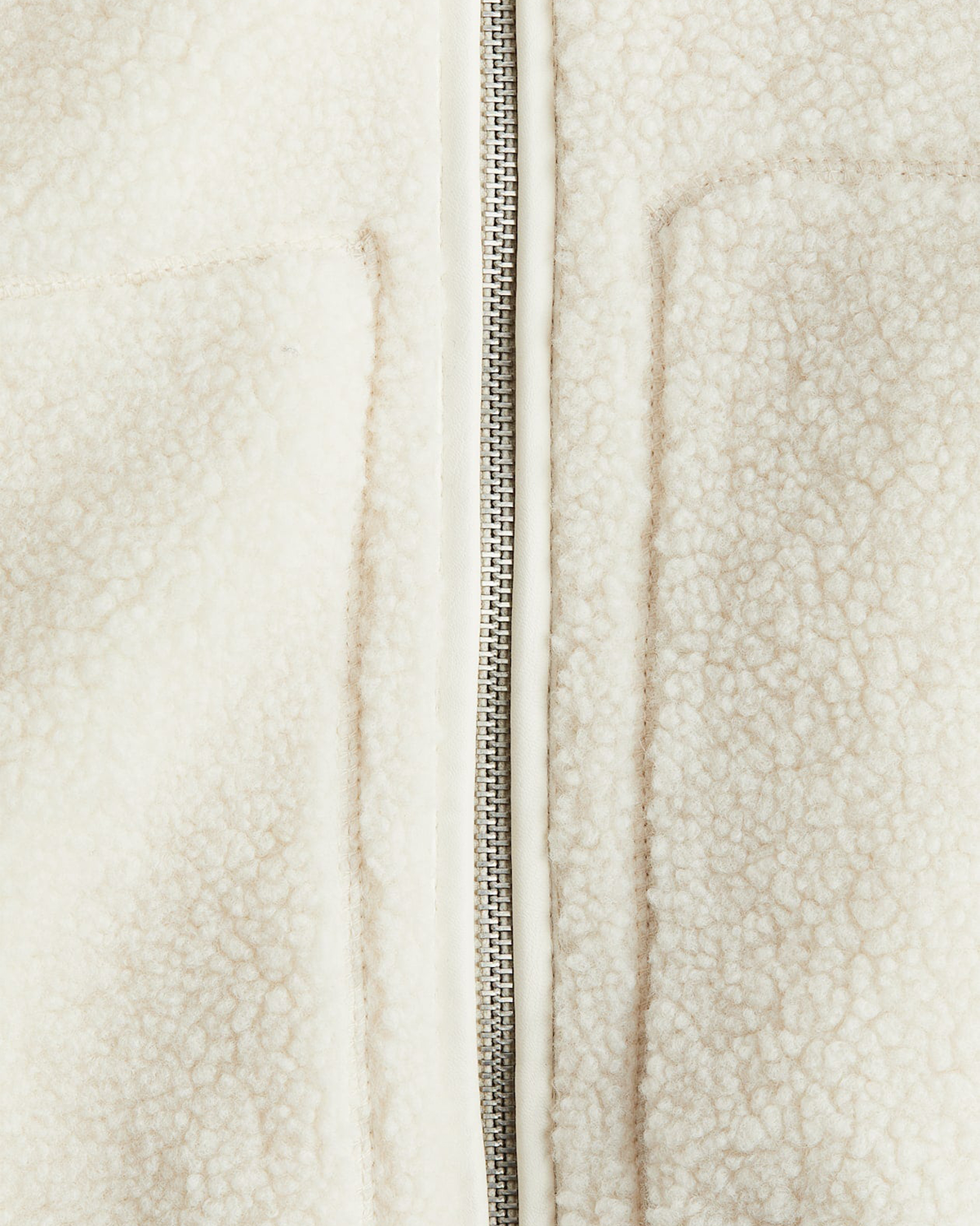 Eine Jacke aus weichem Teddyfell, ergänzt durch Besätze aus beschichtetem Material. Sie hat eine lockere Passform, einen Stehkragen, einen Zwei-Wege-Frontreißverschluss und Kängurutaschen. Für zusätzlichen Komfort ist sie komplett gefüttert.